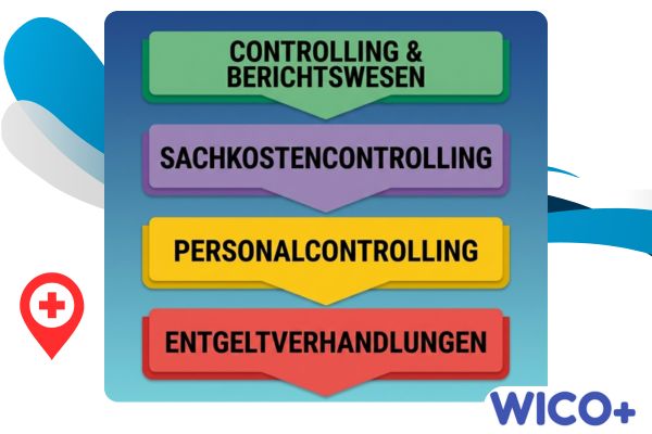 - Personalcontrolling: Analyse von finanzierbaren Personalanteilen und Qualifikationsmix zwischen Versorgung und Wirtschaftlichkeit.